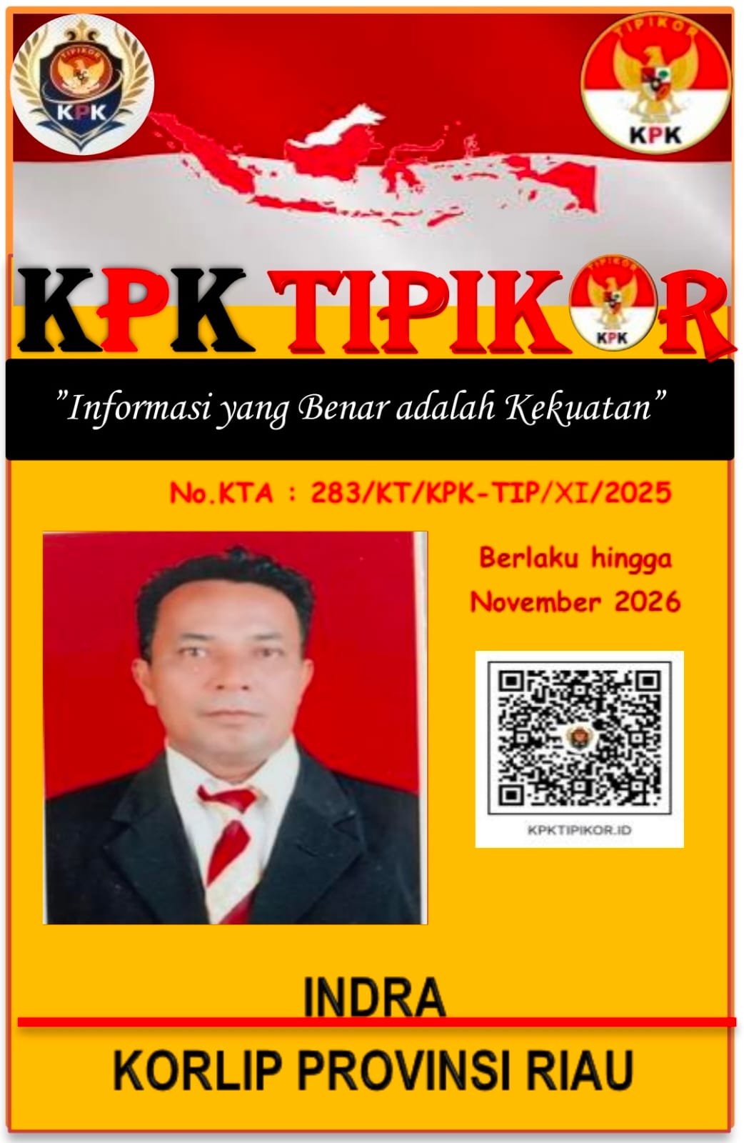 Merpatianugrah.com Bengkalis Terhitung sejak 20 November 2025 Pimpinan pusat media KPK Tipikor.id menugaskan Indra Kitang untuk Wilayah Provinsi Riau.sesuai penugasan / surat tugas no 282/ST KPK -Tip / XI / 2025.